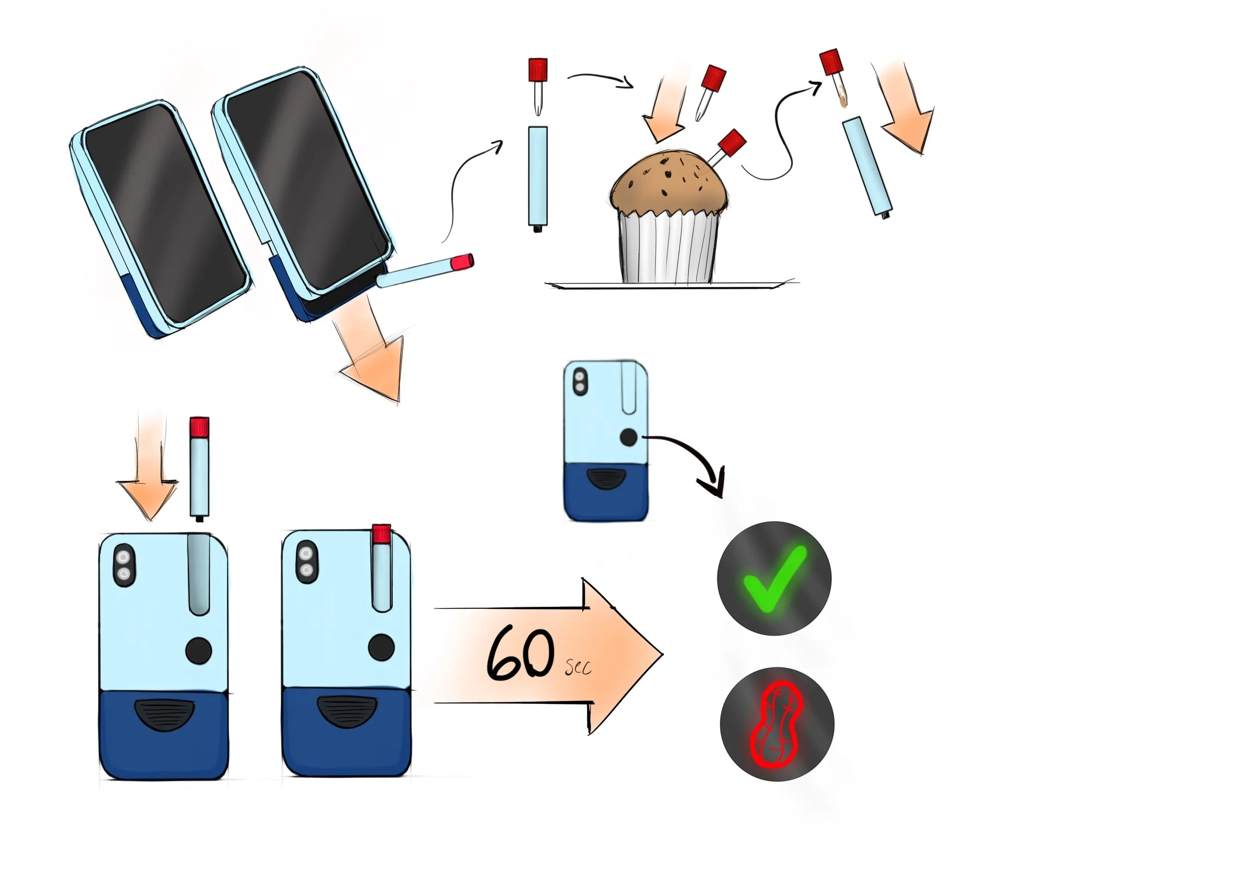 The tubes are used to take food samples. Once you have a food sample in the tube, you insert it into the sensor. After 60 seconds, the mini screen will display if the allergen is present or not.
